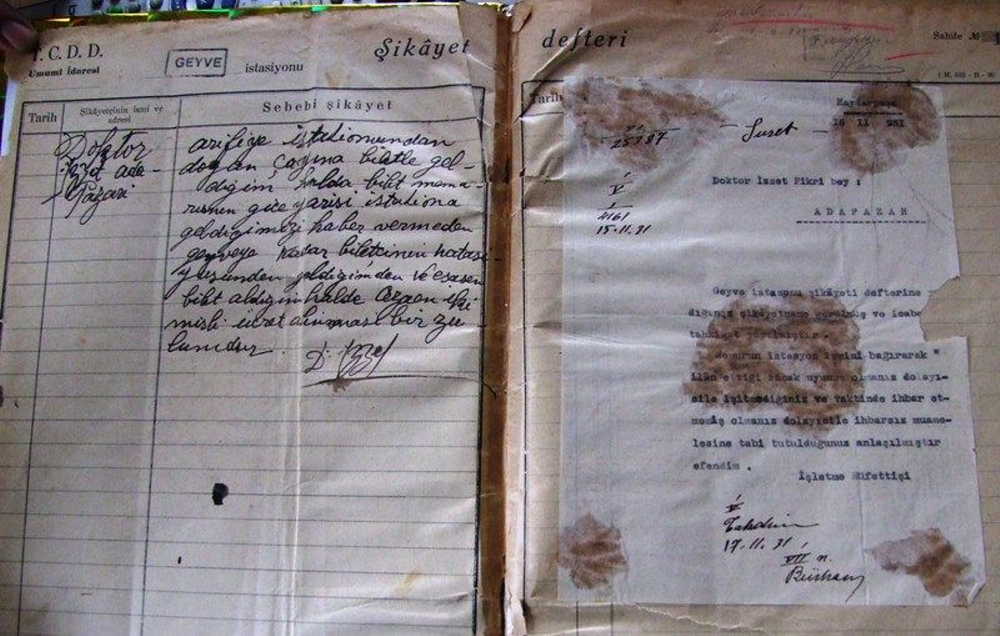 Arşivde bulunan “Şikâyet Defteri”nde, istasyonun vatandaşlar tarafından denetlendiği ve TCDDY yönetiminin bu şikâyetleri ciddiye alarak işlem yaptığı görüldü. Bir başka bilgi de; İstasyonun adının “Geyve İstasyonu” olduğudur.