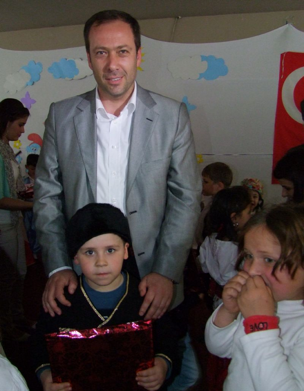 Gösteri sonunda Kaymakam Akbıyık ve Belediye Başkanı Kaya minik öğrencilere hediyeler dağıttı.