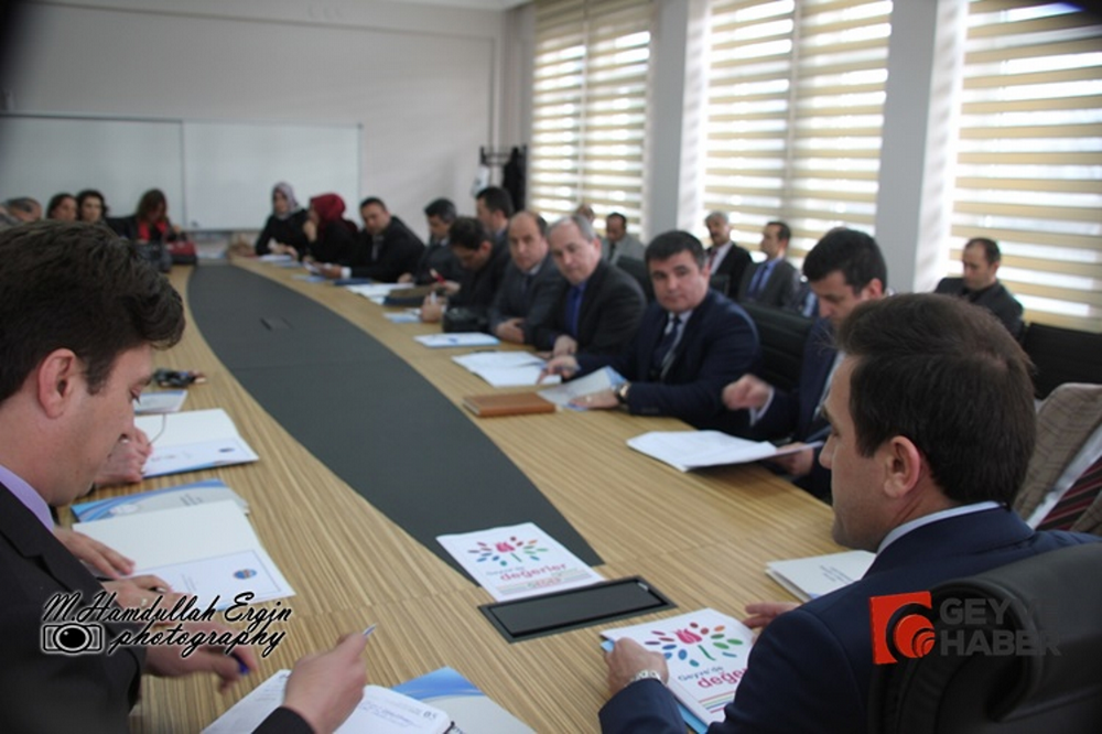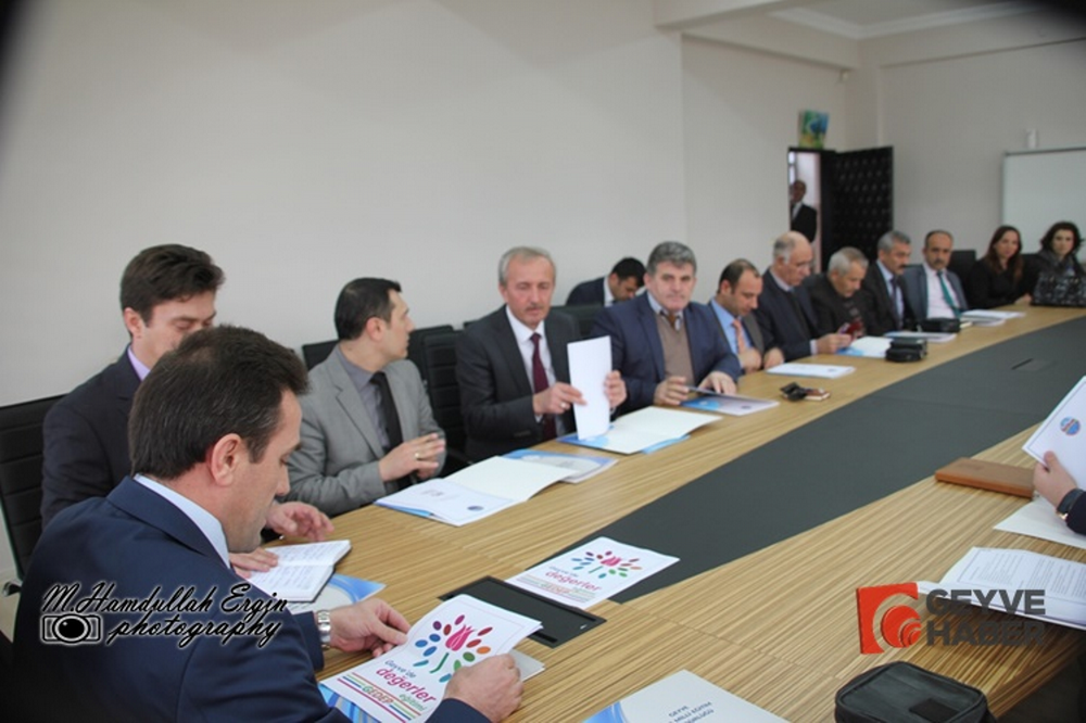 Geyve İlk-Ortaokulu Milli Eğitim Toplantı Salonu’nda Kaymakam İlyas Memiş'in başkanlığında Mili Eğitim Müdürü vekili Aydın Bal, İlçe Müftüsü Ali Erhun ile okul müdürlerinin katılımı ile projenin tanıtım toplantısı yapıldı.