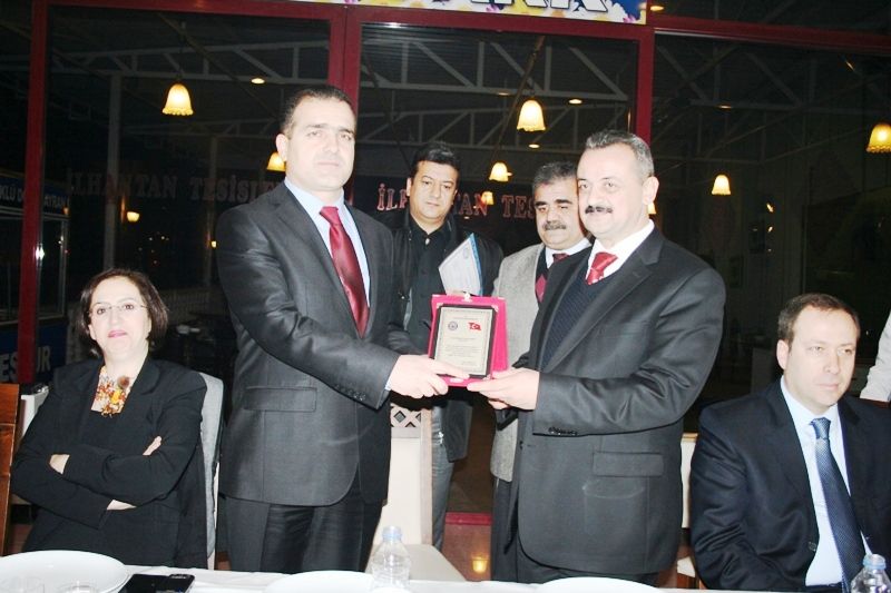 Geyve Kaymakamı İdris Akbıyık, mal müdürü Şalvarcı’ya plaket ve Teşekkür Belgesi verirken:”Mahmut Bey’le birlikte çalışmaktan memnunum. Başarılı çalışmalarından dolayı kendisine teşekkür ediyor, yeni görev yerinde başarılar diliyorum.” dedi.