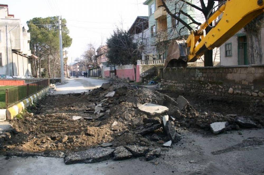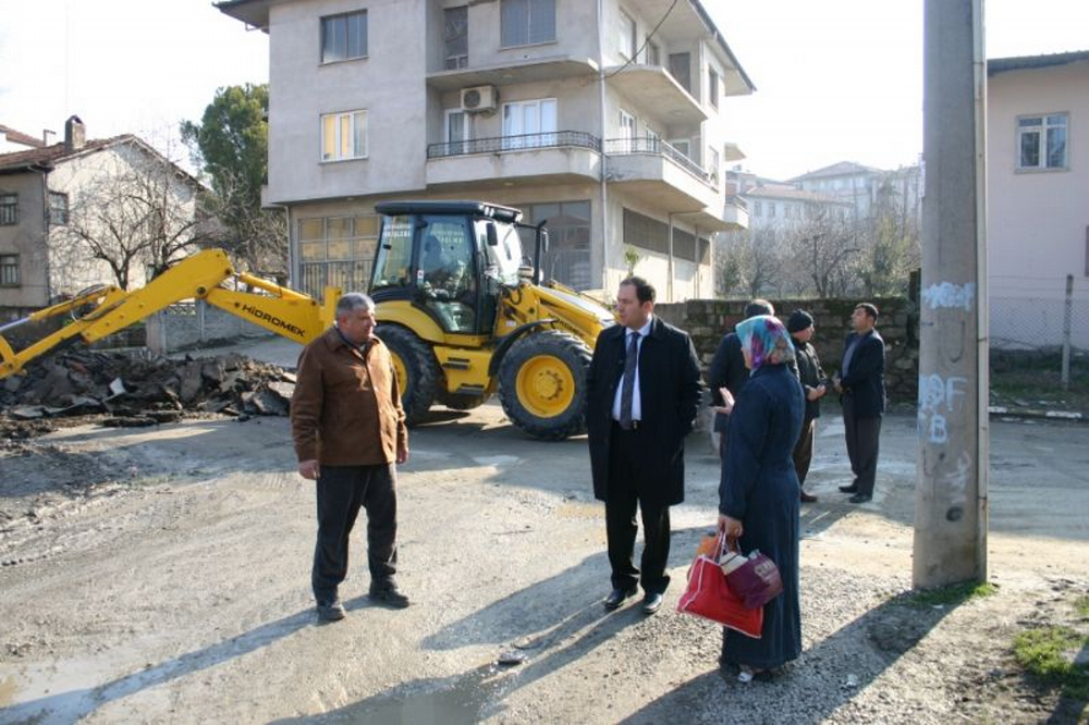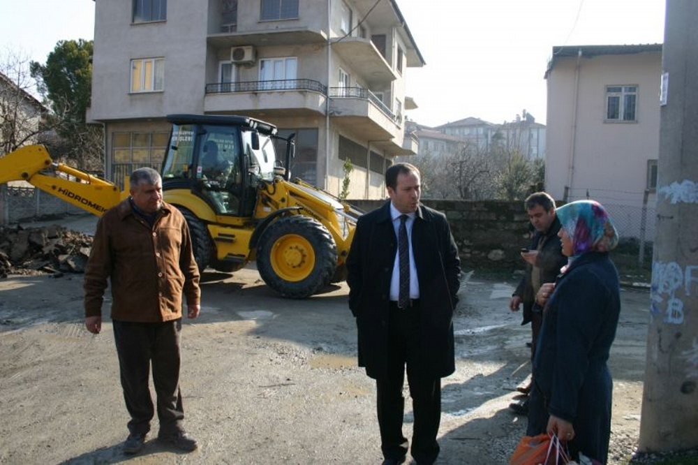 Belediye Başkanı Murat Kaya yol çalışmalarını yerinde inceleyerek yapımı devam eden kilit parke taş döşeme çalişmaları hakkında bilgi aldı.