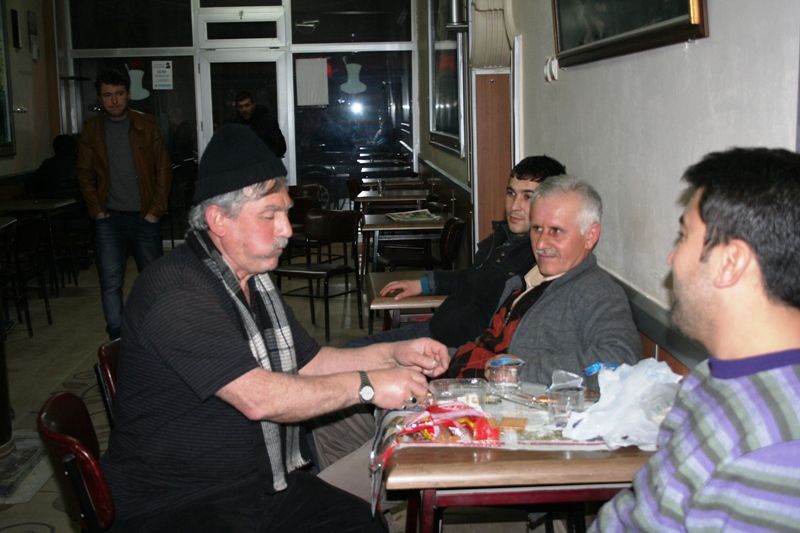 Geyveli İbrahim Çelik, Mustafa Ergin, Eyüp Ay ve arkadaşları akşamları kahvehanede bulaşarak sohbet ediyor.