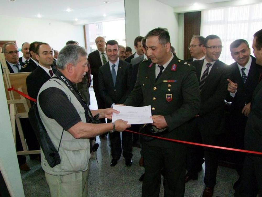 Serginin açılış kurdelesini; Kaymakam İdris Akbıyık, İlçe Cumhuriyet Savcısı Recep Ardıhan, İlçe Emniyet Müdürü Ali Sarıkaya, Kurs öğretmeni A.N. Serdar Akyay birlikte kesti.