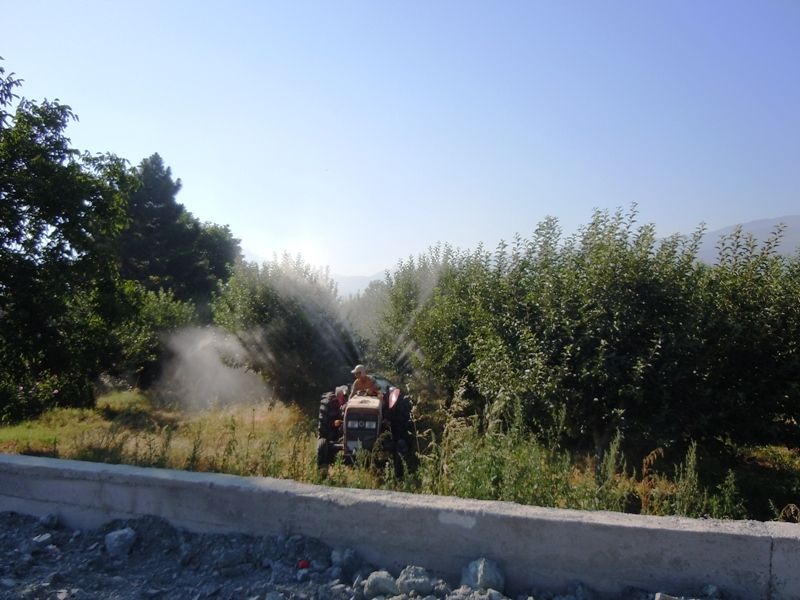 Haftada bir kerre ilaçlanması gereken meyve ağaçları gelişmiş ürün alabilmek için sezon boyunca yaklaşık olarak 20-25 kerre ilaçlanması gerekiyor. Elma, üzüm, ayva gibi meyveleriyle meşhur olan Geyve’de ilaçlı mücadele başladı. Bölge ziraatçı bir yer olduğu için gerekli mücadele yapılmazsa sağlıklı ürün almak da mümkün değil. Bu nedenle bahar aylarında başlayan zirai mücadele hasat öncesine kadar periyodik olarak devam ediyor.