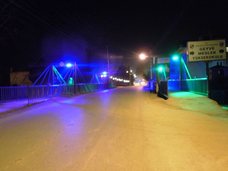 Geyve Belediye başkanı Murat Kaya: “Konyalı Alibey Caddesi üzerinde bulunan Karaçay Köprüsü yaya yollarının 2 mt . daha genişlettik. İstanbul Boğaz Köprüsünün minyatürü şeklinde tasarladık. Geceleri yaya geçidini kullanan halkımızın köprüden geçişlerindeki sıkıntıyı ortadan kaldırıp daha rahat bir şekilde gidip gelmelerini sağlamak amacı ile bu çalışmayı yaptık.”dedi.
