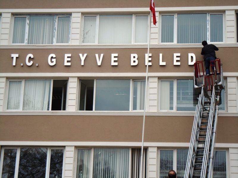 Geyve Belediye binasına yapılan tadilattan sonra eski tabela kaldırıldı. Eski tabelanın yerine Geyve Belediyesi yazıldı.