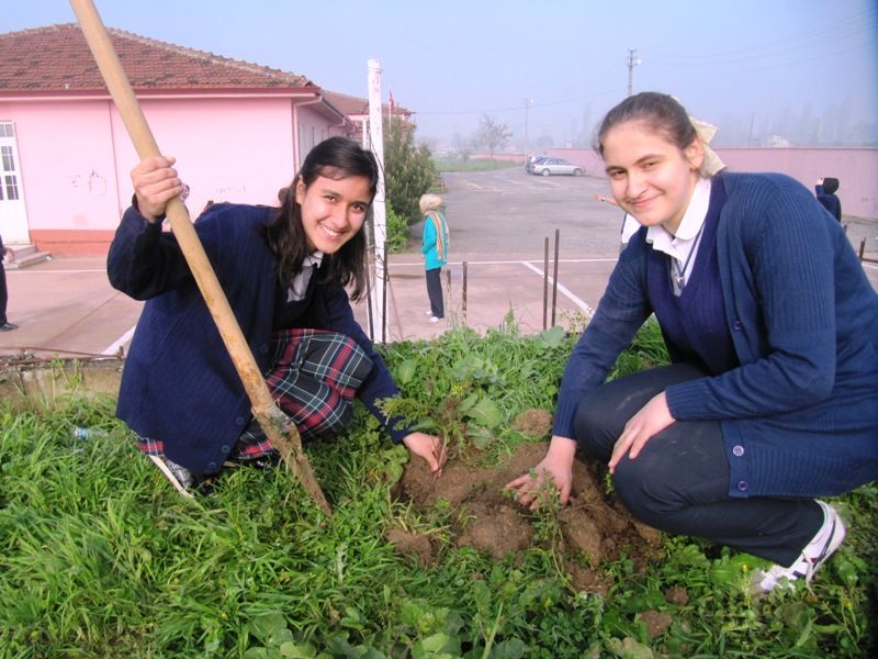 Geyve ASML öğrencileri, okulun bahçesine fidan dikti.